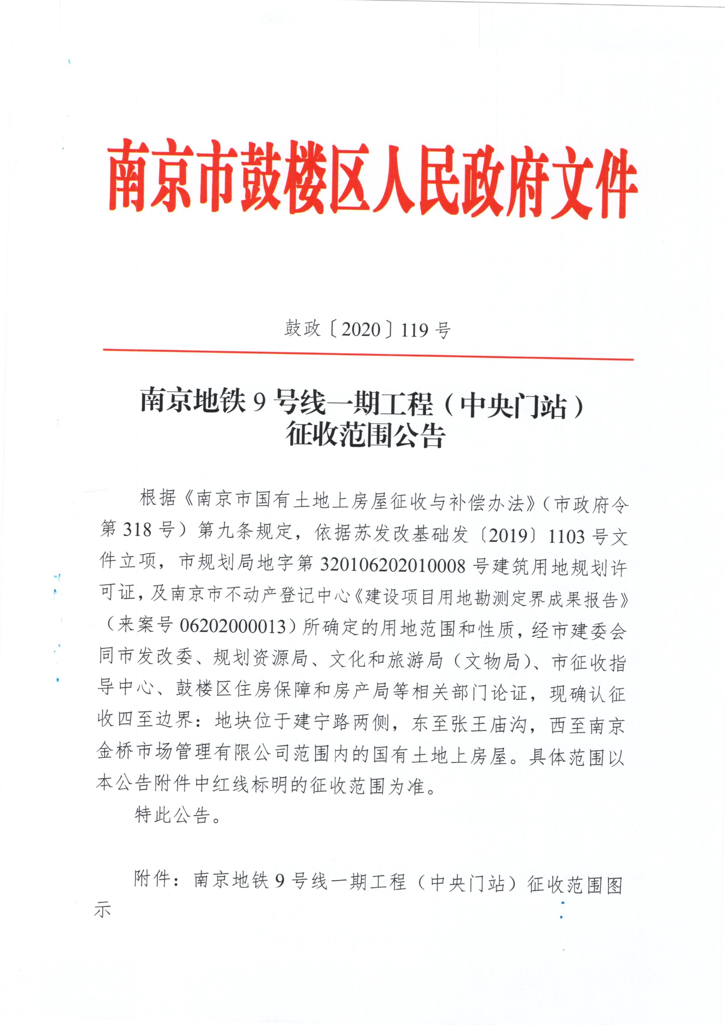 南京地鐵站9號線一期工程(中央門站)征收范圍公告
