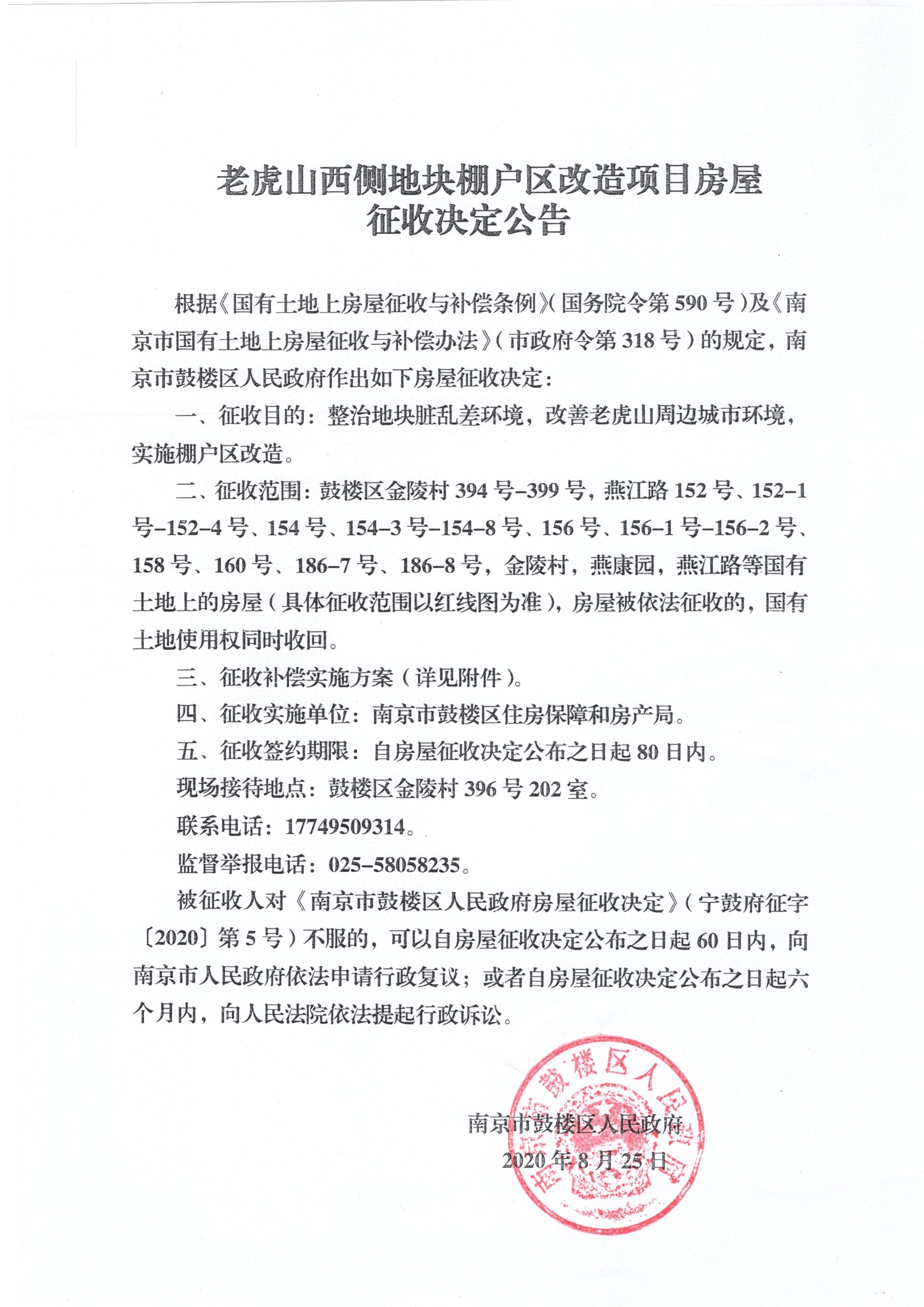 老虎山西側地塊棚戶區改造項目房屋征收決定及公告