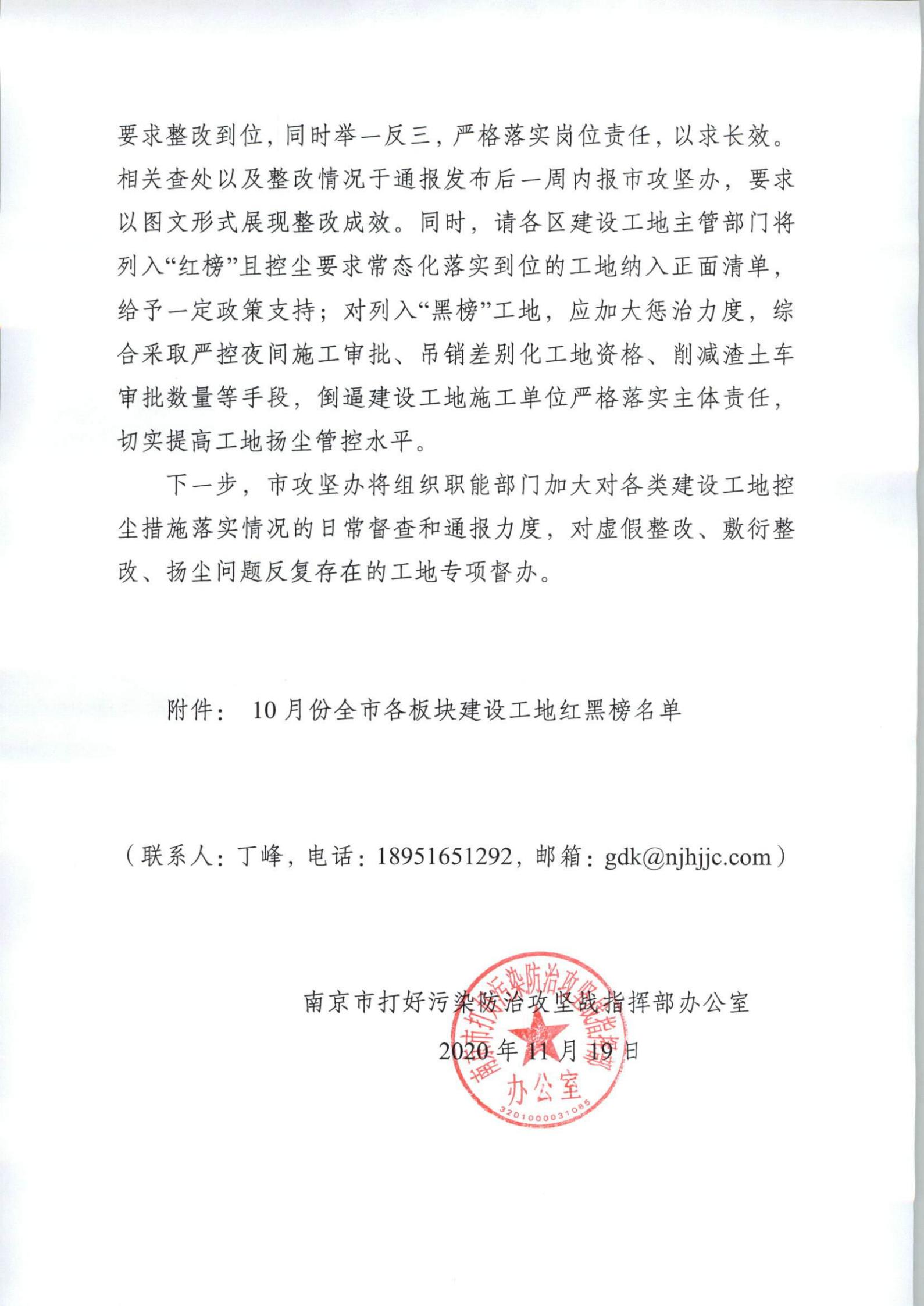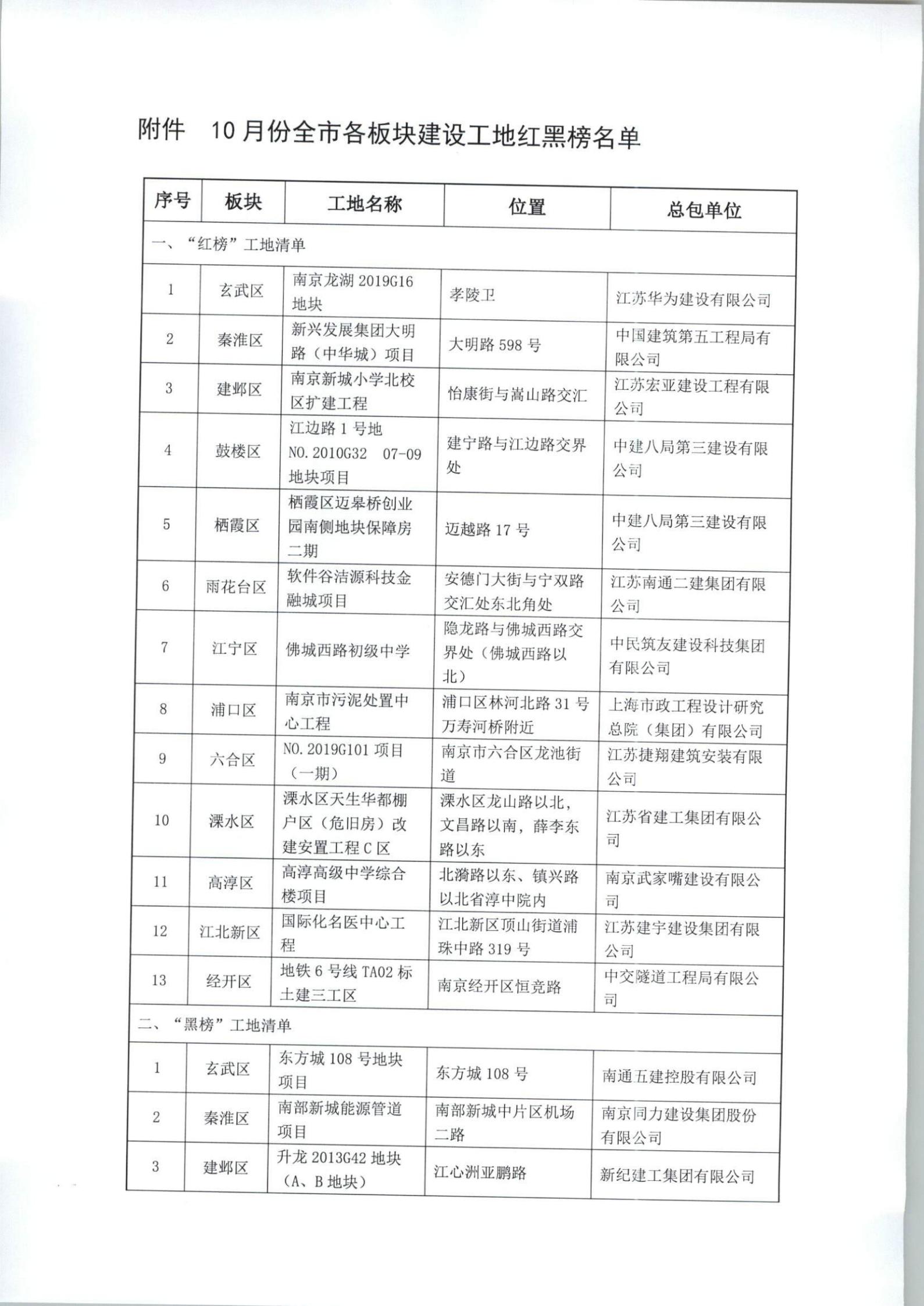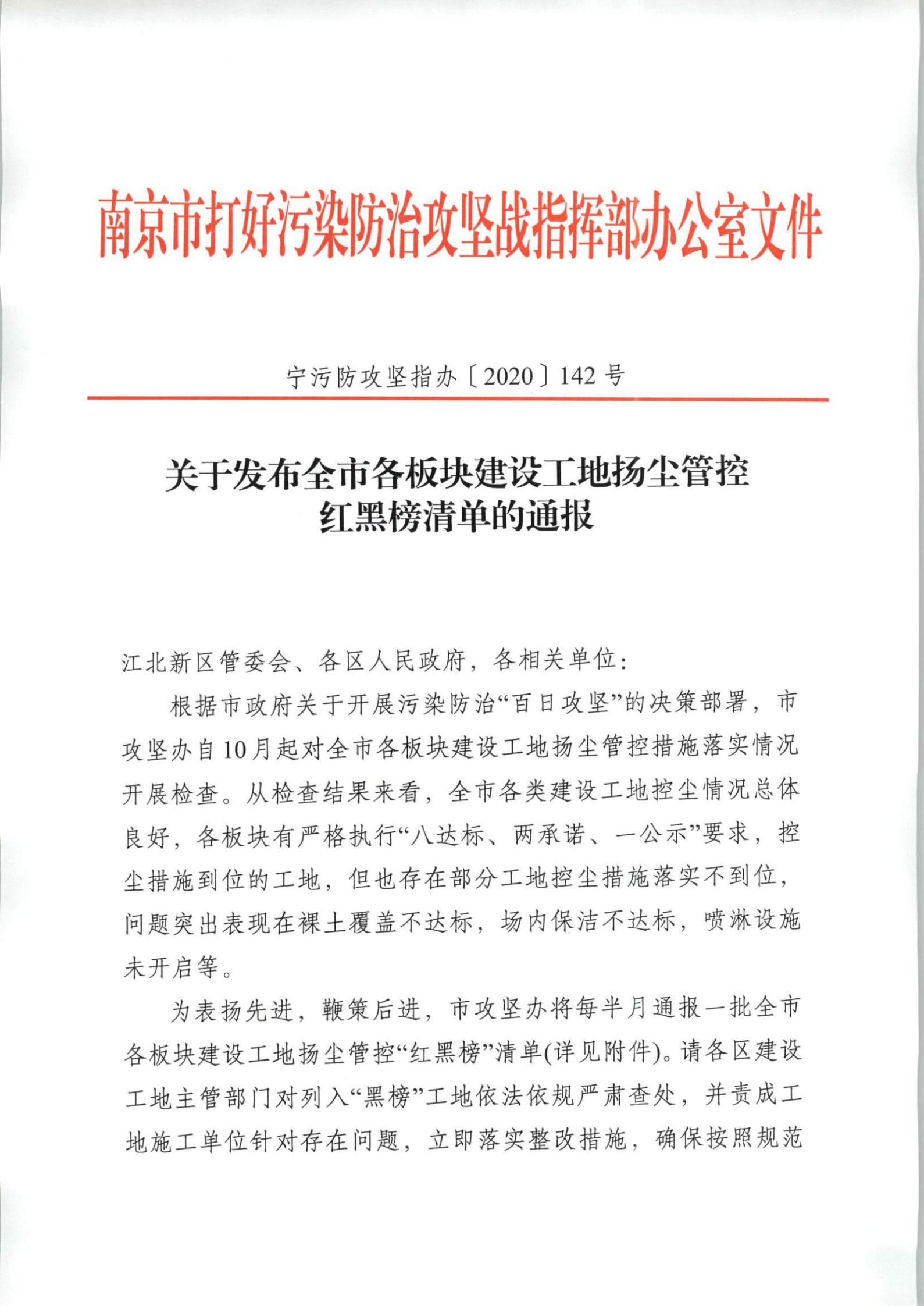 關于發布全市各板塊建設工地揚塵管控紅黑榜清單的通報