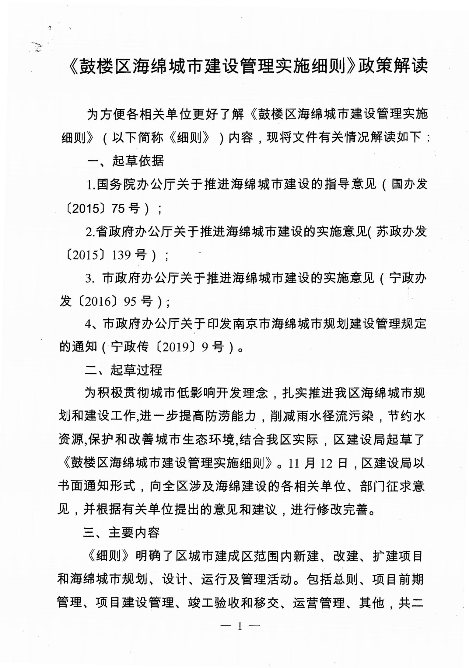 信息名稱:    《鼓樓區海綿城市建設管理實施細則》政策解讀