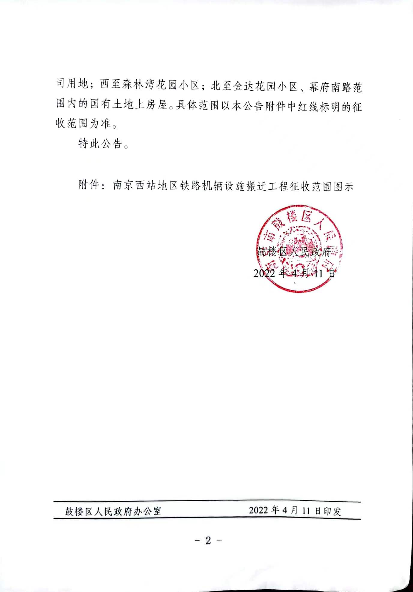 南京西站地區鐵路機輛設施搬遷工程項目征收范圍公告
