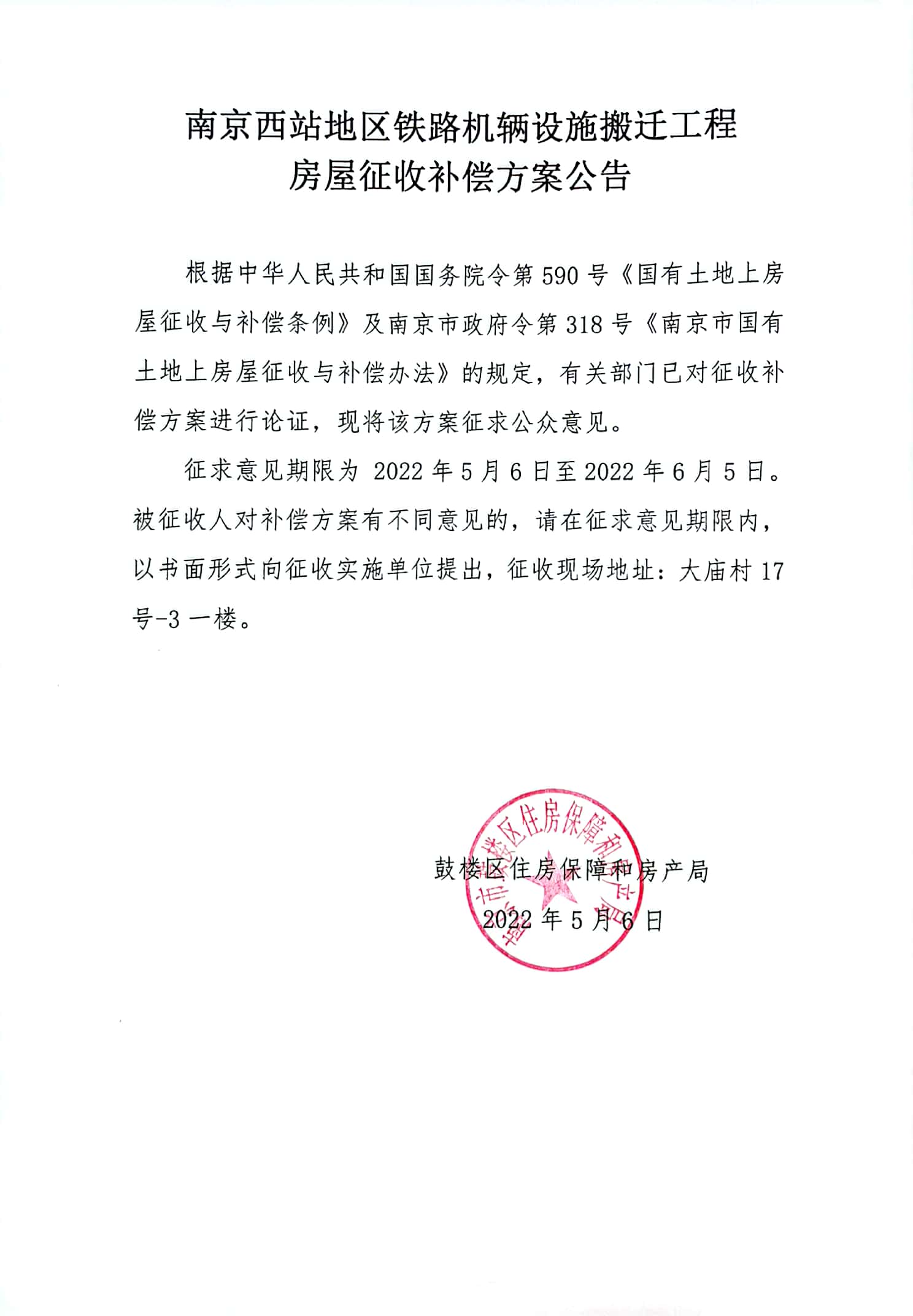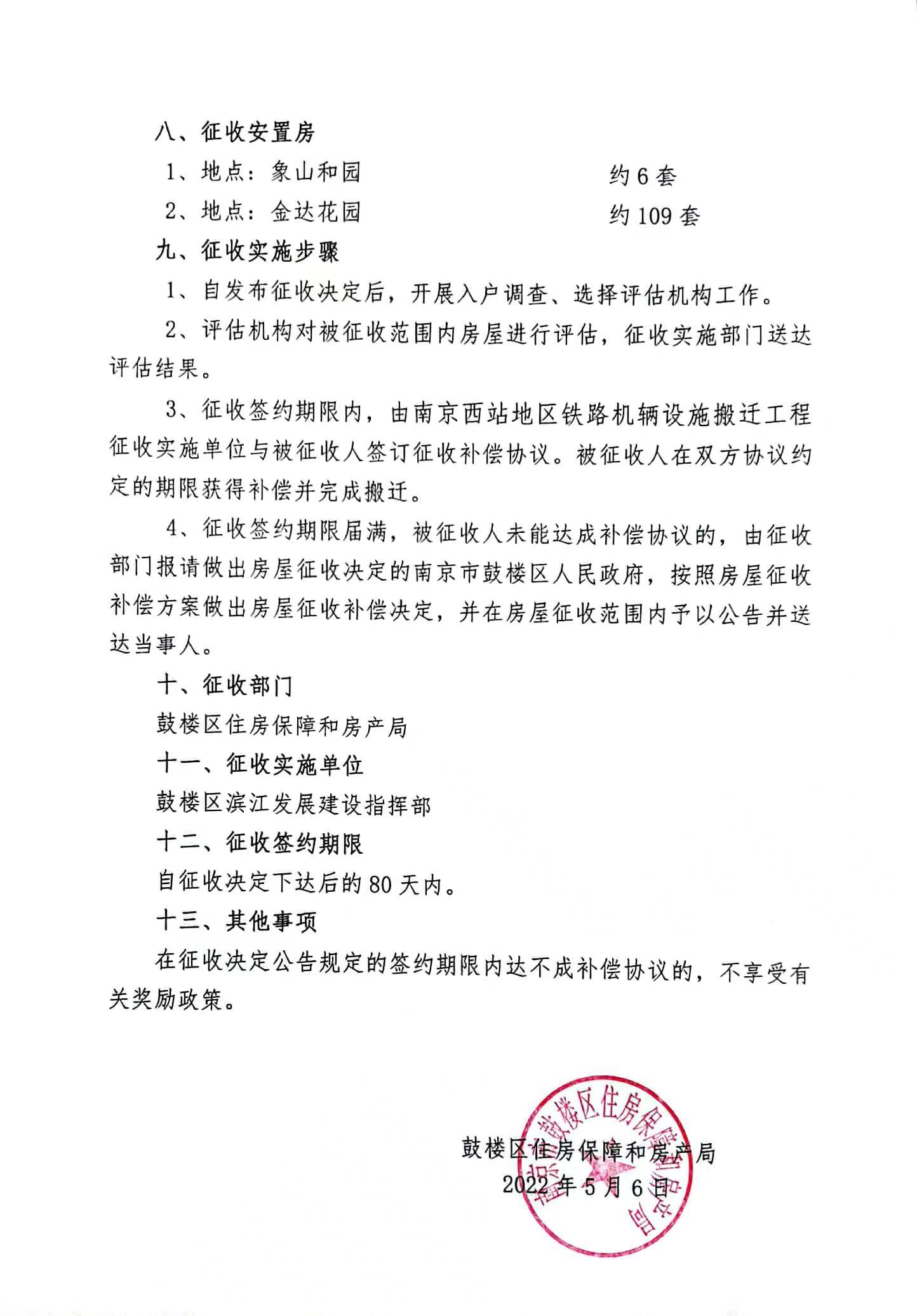 南京西站地區鐵路機輛設施搬遷工程房屋征收補償方案公告