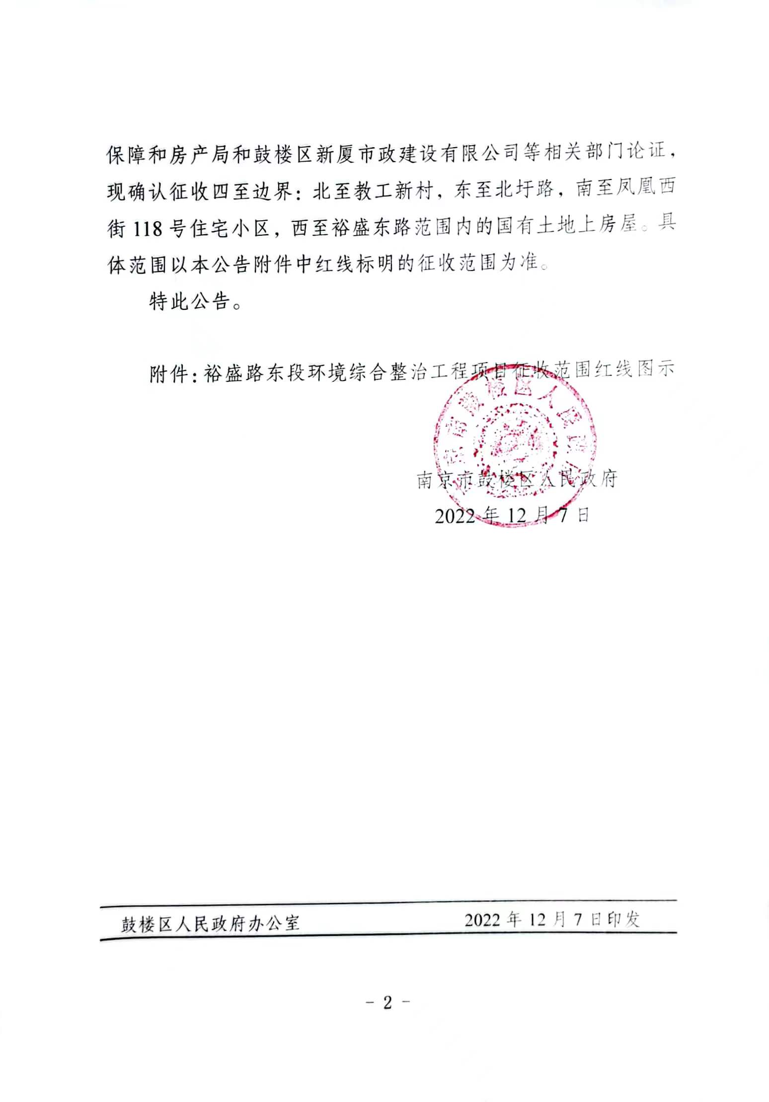 裕盛路東段環(huán)境綜合整治工程項(xiàng)目征收范圍公告