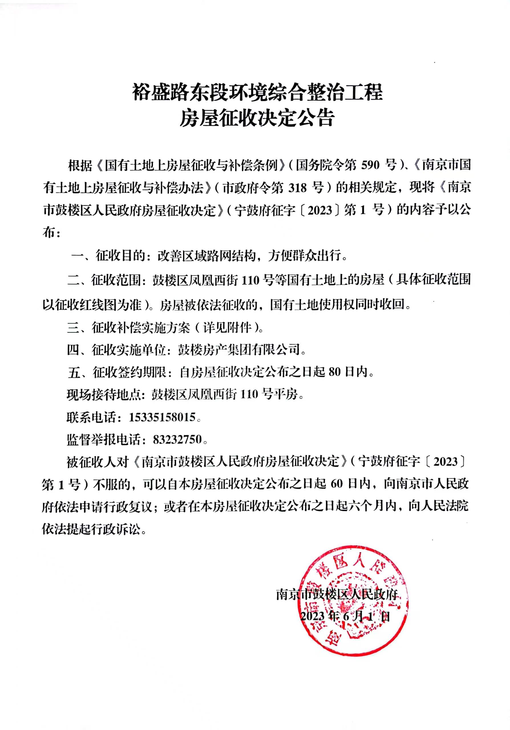 裕盛路東段環境綜合整治工程房屋征收決定公告