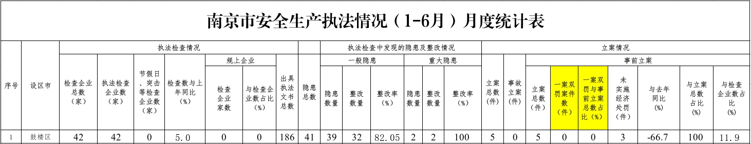 鼓樓區(qū)應急管理局2025年1-6月安全生產執(zhí)法情況統(tǒng)計表