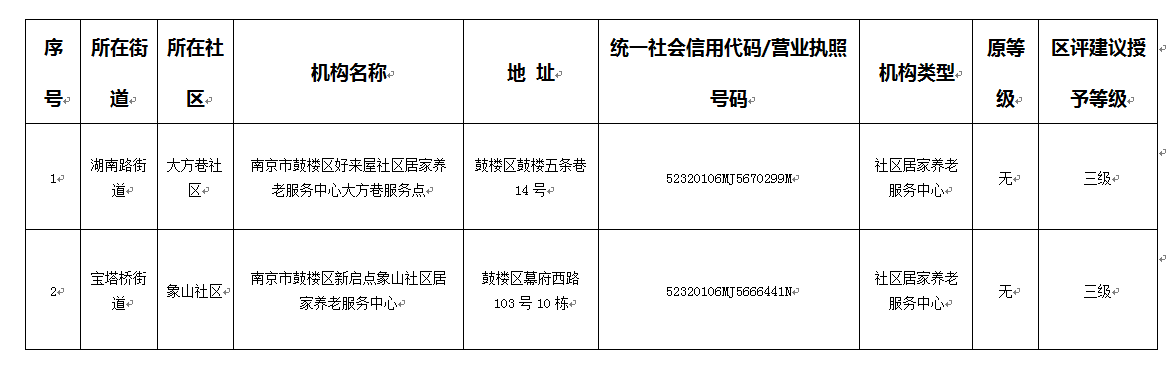 南京市鼓樓區2025年第二季度養老服務機構等級評定結果公示