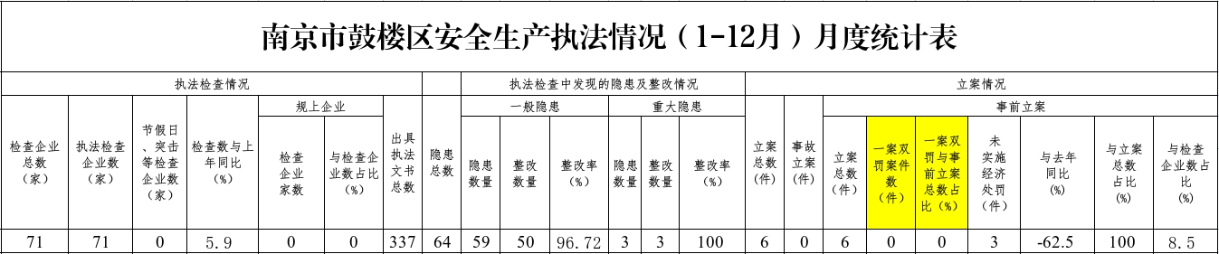 鼓樓區(qū)應(yīng)急管理局2025年1-12月安全生產(chǎn)執(zhí)法情況統(tǒng)計(jì)表