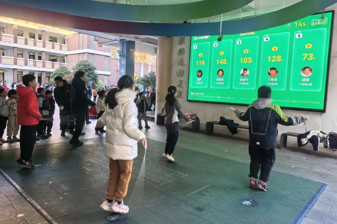 一場別開生面的校園跳繩PK挑戰(zhàn)賽,在南京市力學(xué)小學(xué)、南京市力人學(xué)校(小學(xué)部)火熱開啟。AI智慧體育運動大廳的亮相,讓短暫的課間時光,變身趣味十足的運動主場。AI智能裁判,精準(zhǔn)捕捉每一次跳躍、實時記錄每一組數(shù)據(jù),為跳繩活動注入滿滿科技感,讓計數(shù)更公正、比拼更高效。 本次挑戰(zhàn)賽創(chuàng)新打造跨校區(qū)云端對抗模式,五人跳繩團隊PK同步開賽。力學(xué)、力人兩個校區(qū)的隊員跨越時空限制,同場競技,讓運動突破校園邊界,帶來全新的沉浸式體驗。