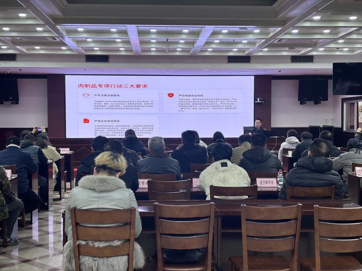 培訓緊扣農貿市場管理核心環節,從多角度切入,對市場食品安全、環境衛生和安全生產分別進行了詳細講解。在食品安全領域,明確開辦方與經營戶食品安全主體責任,細化責任制度、進貨查驗、索證索票、自查自糾的落實規范。整治制售假劣肉制品專項整治環節,詳細說明病死畜禽肉、無檢疫證明肉制品等禁售品類,強調肉類票據齊全的重要性。環境衛生方面,針對市場分區管理、攤位清潔、“三防” 設施配備明確要求。最后,集中觀看了消防安全警示視頻,并再次督促各市場注意安全生產,加強消防宣傳,保障市場安全。
