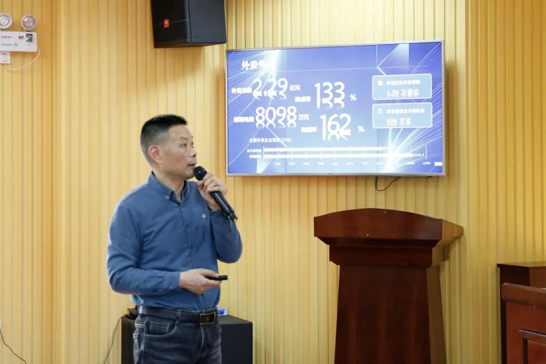 ????源昇文化總經理付大洋隨后發言,介紹了企業的發展規模以及經營模式,分享了在手在談業務項目和今后的發展方向,認可街道的營商環境,提出了要落地轄區發展的意愿。