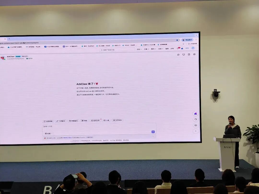 ????南京市有哪些人才新政?鼓樓區的就創業政策又是怎樣的?座談會上,鼓樓區人社局就業管理中心創業負責人劉潔,為同學們送上“人才政策大禮包”——從安居到創業,從項目資助到服務保障,誠意滿滿,助力有意向留在鼓樓的青年就業創業者成長、發展,并鼓勵青年大學生們踴躍報名第五屆“英才匯聚創贏鼓樓”青年大學生創新創業大賽。 2.大咖分享 ????從企業級AI“龍蝦”到家電領域的AI創新,來自字節跳動、云知聲、同橙OPC、博西家電的AI大咖們為青年們帶來了一場干貨滿滿的技術分享。 Arkclaw驅動的產業賦能與生態重構